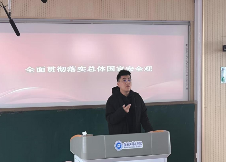 学生第二党支部书记梁君同志以“全面贯彻落实总体国家安全观”为主题为全体学员开展党课第三讲。全面贯彻落实总体国家安全观,要以人民安全为宗旨,以政治安全为根本,以经济安全为基础,涵盖多领域安全。贯彻落实时,需增强全民国家安全意识,开展宣传教育活动,营造安全稳定的社会环境,保障国家发展行稳致远。