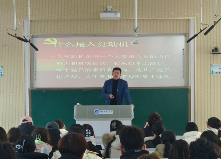 辅导员姚远老师以“发挥先锋模范带头作用”为主题为全体学员开展党课第五讲。姚老师指出全体学员要不断提高政治觉悟和政治能力,自觉用党的创新理论武装头脑,主动践行责任担当,主动发挥先锋模范带头作用,为同学、为班级、为学院做出贡献。