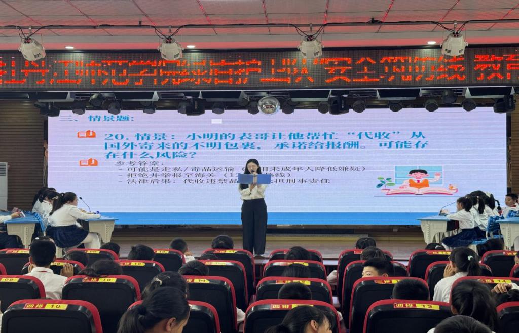 情境问答题更是趣味十足,题目设置了各种日常生活中可能遇到的安全场景,如遇到陌生人敲门、发生火灾时如何逃生等。同学们需要根据情境进行分析和回答,提出合理的应对措施。这一环节让同学们将所学的安全知识运用到实际情境中,真正做到了学以致用。各小组同学积极讨论,各抒己见,提出了许多切实可行的解决办法,赢得了现场观众的阵阵掌声。