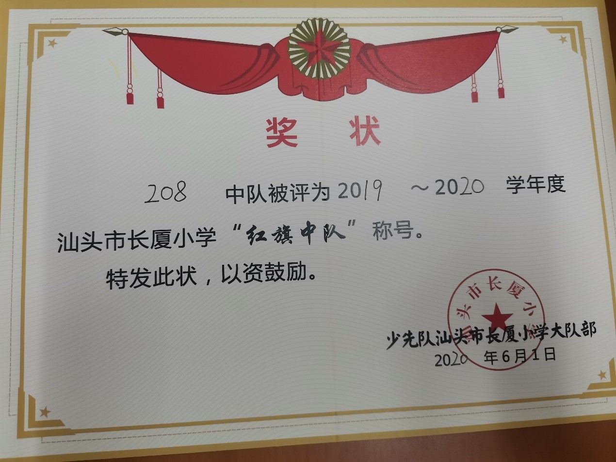 ②2020.7获长厦小学优秀少先队辅导员、优秀班主任、红旗中队的称号(长厦小学)