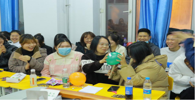 活动第四项,主持人带领大家进行趣味小游戏,欢声笑语充斥在场地每个角落,每个人心中洋溢着幸福与对祖国的祝愿。