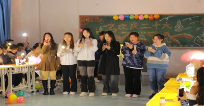学长学姐也被温馨的氛围包裹,也参与其中。展现出青年对祖国衷心祝愿与喜悦心情。