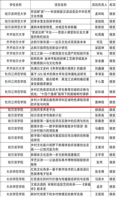 经过激烈角逐我院共有两个项目在省赛的各个高校代表队中脱颖而出,其中由夏文静、杜琳娜、于海英老师指导,高琪玺同学负责的《屋檐下流动的爱——“双减”背景下家庭教育帮扶指导新体系》项目获得金奖,由姚雯雯、甄莹、唐云菲老师指导,窦琳程同学负责的《乡村小学课后服务跨学科区域特色课程资源的开发与利用》项目获得银奖。