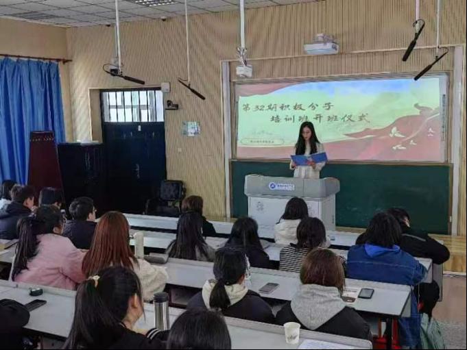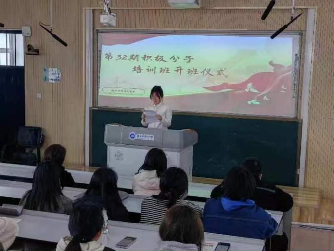 为加强基层党组织建设,切实提高入党积极分子对党的认识与理解,端正入党动机,激发入党的积极性,教育科学学院党委于3月20号举行第32期入党积极分子培训班开班仪式。出席本次会议的领导有:我院党委副书记李想、辅导员关天宇老师、辅导员朱佳慧老师以及培训班全体学员,本次开班仪式由学生第二党支部书记梁君主持。